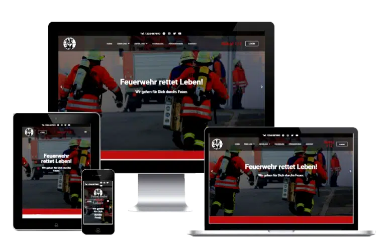 Responsive Feuerwehr-Website auf verschiedenen Geräten